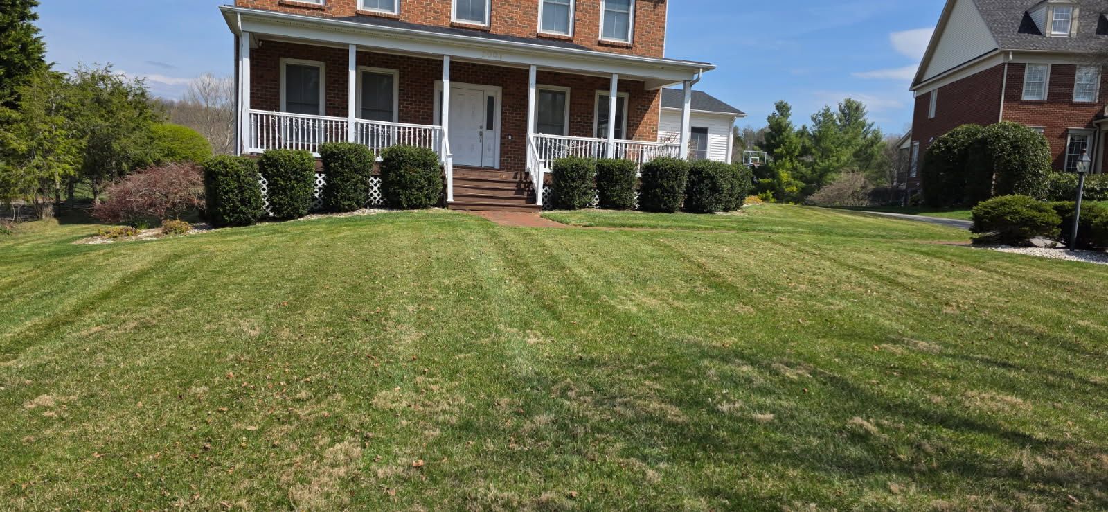 After the crew finishes, your lawn will have uniform height across the entire yard, crisp edges that frame walkways and beds, and no grass clippings scattered on concrete or asphalt. Hawkeye's Lawn Care completes the blowoff as the final step so you do not track debris indoors or see piles left in corners. Recurring customers receive priority scheduling, which means your slot stays consistent even during the busiest weeks of the season.